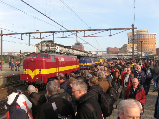 Vandaag kwamen treinspotters uit het hele land bijeen op het station van Amersfoort om acht oude locomotieven uit de 1200-serie te kunnen bekijken en op de foto of film te kunnen schieten.