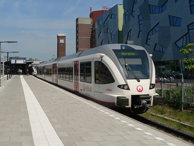 Een trein van Veolia op de Maaslijn tussen Nijmegen en Roermond