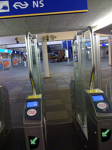 De OV-Chipkaart incheckpoortjes op de grote stations.