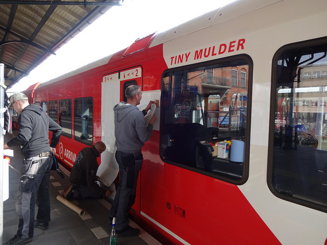 Op zaterdag heeft Wieder Line, het initiatief van provincie Groningen en Toerisme Groningen om de verbinding met Duitsland te promoten, een nieuwe bestickering voor de Spurt-treinstellen van Arriva onthuld.