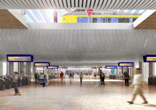 Impressie van hoe de zuidentree van het Hoofdstation er mogelijk uit komt te zien.
