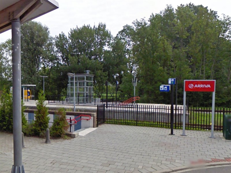 Station Winsum met de defecte lift op het perron.