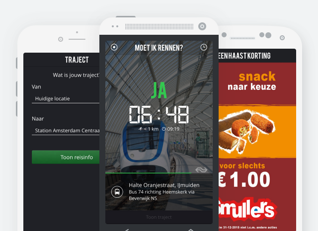 De app telt met een digitale klok af wat de tijd is voor de reiziger om de overstap te halen. Een simpele 'Ja' of 'Nee' op het scherm laat vervolgens zien of het nog nut zal hebben om harder te blijven lopen, rekening houdens met eventuele vertragingen.