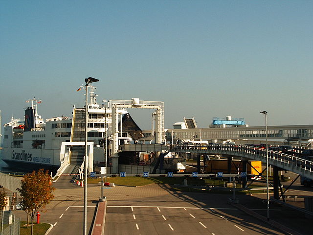 De haven van het Puttgarden waar de treinen op de boot naar het Deense Rodby gaan.