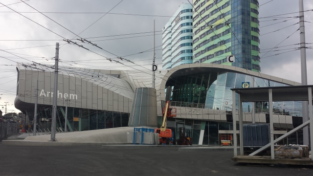 Station Arnhem, net voor de niet-officiele opening van de stationshal.