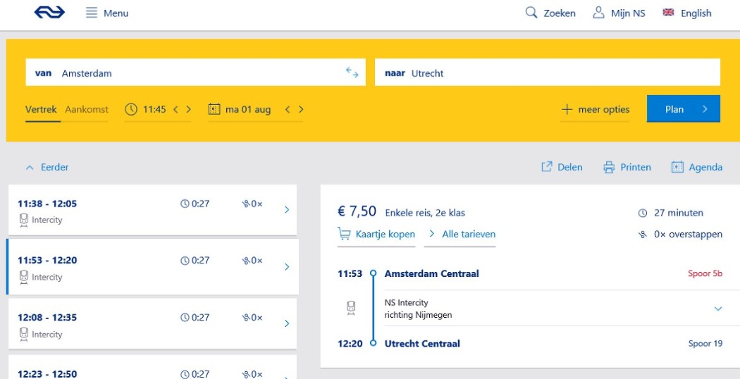NS maakt reisplanner weer verticaal