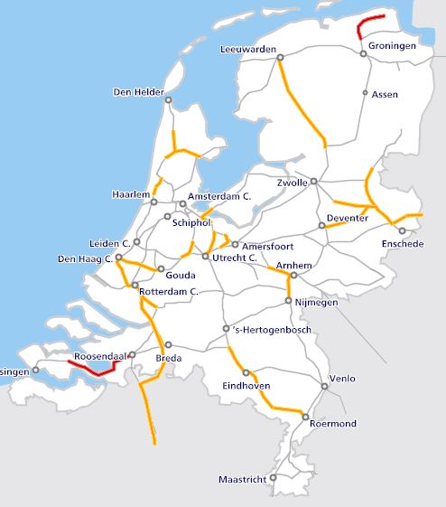 Onder andere op deze trajecten is minder tot geen treinverkeer mogelijk: Eindhoven-'s-Hertogenbosch/Tilburg, Utrecht Centraal-Amersfoort/Baarn/Hilversum, Dordrecht-Den Haag HS,Roermond-Eindhoven, Alkmaar-Haarlem, Roosendaal-Vlissingen, Ede-Wageningen-Nijmegen. Het spoor tussen Groningen en Roodeschool is vanwege herstelwerkzaamheden na een eerdere ontsporing buiten gebruik.