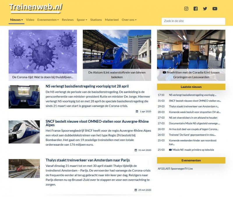 De lente is kort geleden ingegaan, en vandaag is het 1 april. Dat zijn dé ingrediënten voor iets nieuws: Na negen jaar de vorige gele layout te hebben gebruikt is Treinenweb sinds vandaag voorzien van een splinternieuw uiterlijk.