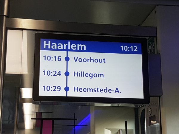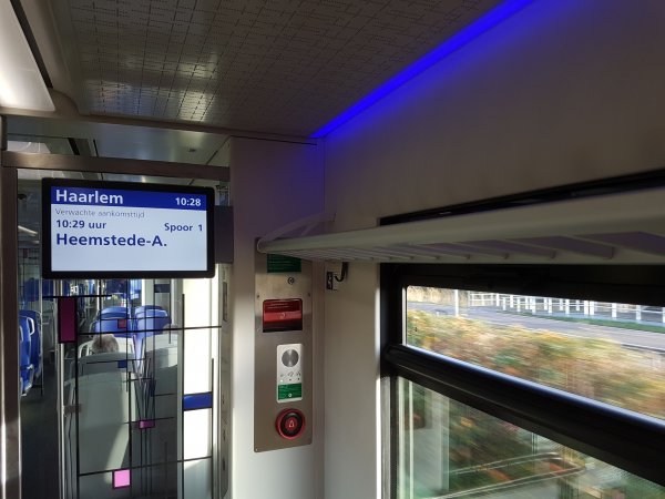 De SNG die op Haarlem is aangekomen en klaar staat om te keren. Inmiddels geeft het bestemmingsbord Den haag Centraal als nieuwe bestemming aan. Deze bestemming wordt automatisch aangepast, maar kan ook handmatig worden ingesteld door de machinist uit een lijst van bestaande stations. Opmerkelijk is dat er ook enkele niet-NS stations mogelijk te zijn in te stellen.