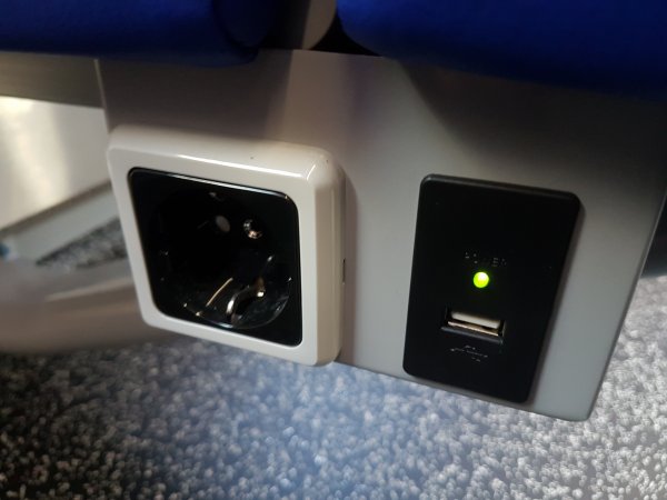 Een telefoon of laptop opladen? Dat kan eenvoudig met een stopcontact of USB-aansluiting die onder alle stoelpartijen verwerkt zijn. Deze zijn zowel in de eerste als de tweede klas te vinden.