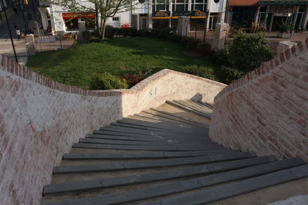 De trap vanaf het stationsplein naar in de richting van het centrum van Heerlen.