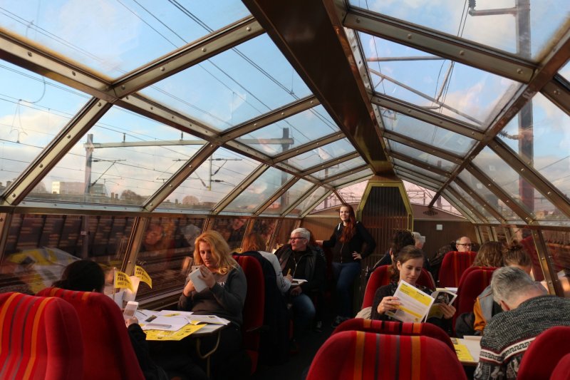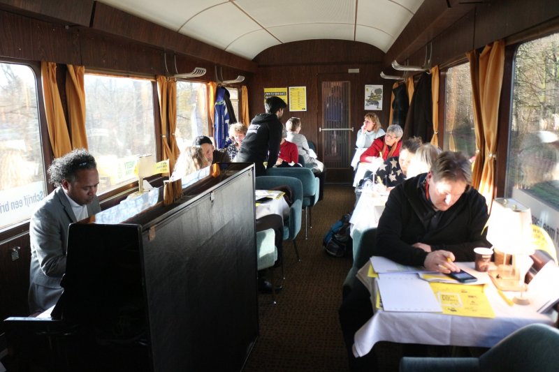 Tijdens de rit konden de brievenschrijvers ook genieten van van optredens en lezingen van onder andere Farbod Moghaddam, Daniel Benjamin Music, Ahmet Polat, De Baron, Lebbis, Ramana Magic, Tangarine, Julya Lo'ko, Faber & De Jong, Angela Groothuizen en anderen. De gastheren van die dag die aan boord van de trein zaten waren Erik de Zwart en Jeroen Nieuwenhuizen.