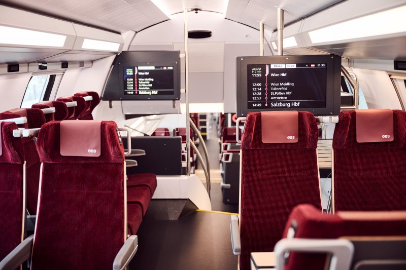 De 14 bestelde zesdelige KISS-treinen bieden 486 zitplaatsen per trein. Dat is ongeveer 20% meer dan de huidige enkeldekker Railjets van Siemens. Dankzij de brede, lage instapdeuren kunnen reizigers snel en drempelloos in- en uitstappen, wat vooral handig is voor mensen met een beperking, zware bagage, kinderwagens of fietsen. Er zijn twee rolstoelplaatsen met in hoogte verstelbare tafels, evenals acht fietsplekken per trein.