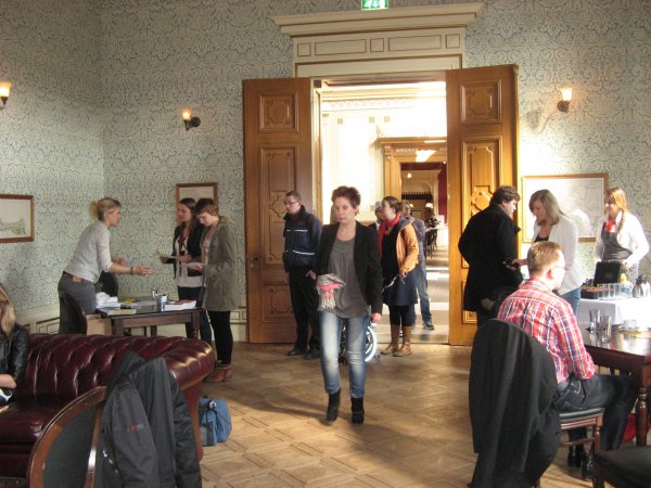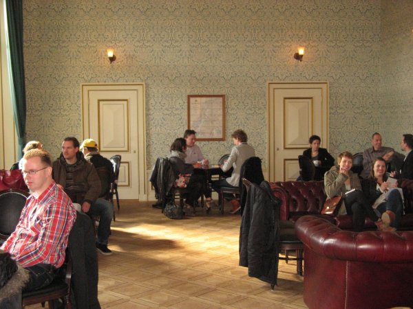 De genodigden waren van harte welkom om zich te verzamelen in de Eerste Klasse wachtkamer van het Spoorwegmuseum om 11:00 uur. Daar werden ze bewapend met een naambadge, kladblok en pen. Na een voorlichting van de hoofdconducteut van treinstel 273 werden we naar de trein begeleid. Daar stonden de inmiddels via NS welbekende Nick & Simon klaar om van ons de tickets aan te nemen, en de heren te voorzien van een glaasje champagne. Na een korte introductie van de enthausiaste uitsmijter vertok de trein richting Driebergen.