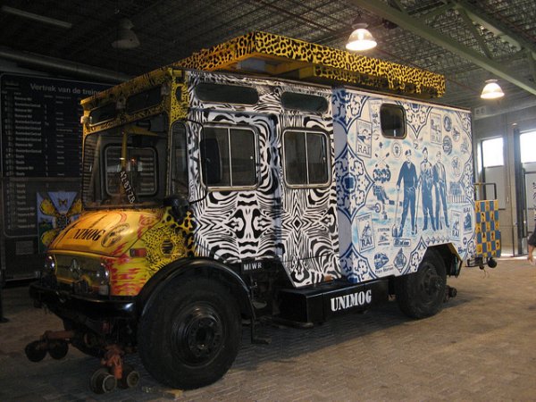 De Unimog welke het Spoorwegmuseum in bezit had was veranderd in een soort jungle-voertuig, welke eigendom had kunnen zijn geweest van een Delftenaar of een liefhebber van die plaats. De wagen welke van oorsprong geel was was voorzien van zebrastrepen, en de werkruimte achterop was voorzien van Delftsblauwe kleuren waar drie personen op afgebeeld waren.