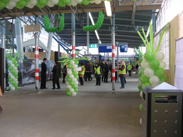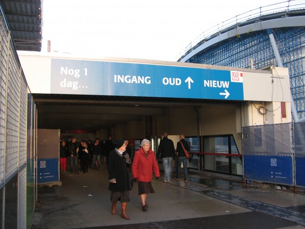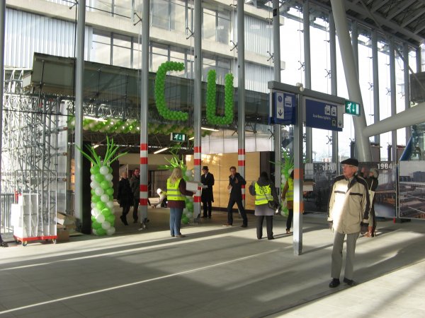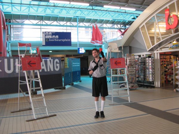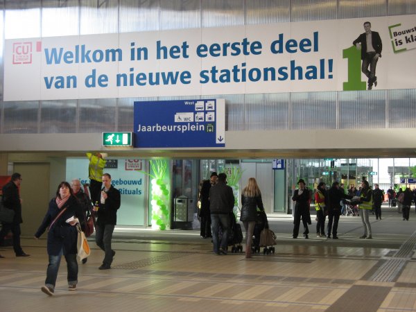 De eerste dag dat de nieuwe hal geopend was, was er een 'scheidsrechter' welke aan de reizigers die de oude traverse als route wouden nemen, een rode kaart uitdeelde. Dit hadden we wel eens eerder gezien bij de afsluiting van het andere deel van de stationshal aan de Jaarbeurskant. Opvallend genoeg waren er maar een klein handje-vol reizigers die de nieuwe kant op werden geleid.