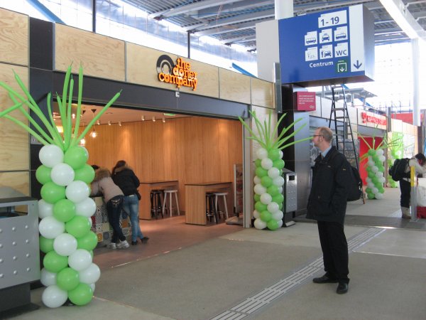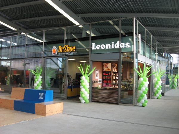 Ook de Prailine en bonbons-zaak Leonidas en de schoenreparatiewinkel Dr. Shoe hebben hun stekje gevonden in de nieuwe stationshal van Utrecht Centraal. Ook zien we links een paar zitstoelen welke we nog kennen uit het midden van de oude stationshal.