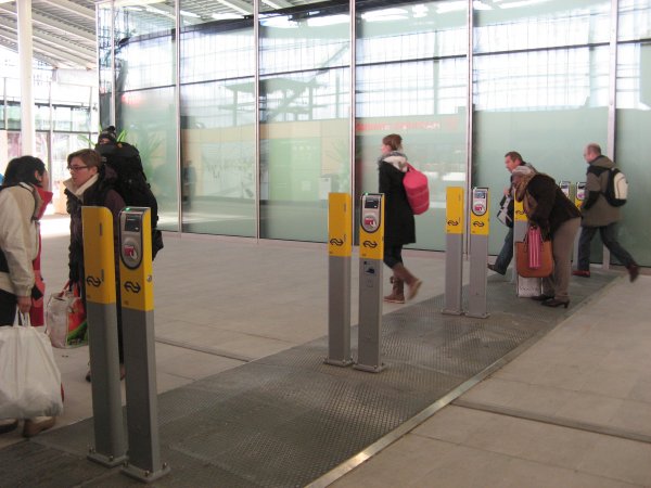 Ook zijn er in de stationhal de 'in- en uitcheck-drempels' geplaatst voor je OV-Chipkaart. Mogelijk dat er later nog poortjes zullen komen bij de ingang, maar dat moet nog besloten worden door diverse partijen.