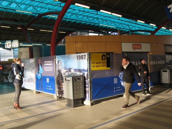 Ook de Kiosk is nu verhuisd naar de nieuwe locatie in de nieuwe stationshal. Spoor 14 en 15 zijn nog bereikbaar.