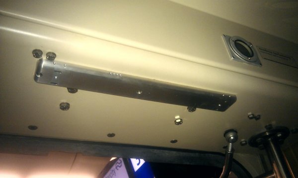 Hier zien we een dergelijke telstrip boven de deur van de trein. Deze telstrips zijn op tiental strategische plekken aangebracht in de trein, zoals bij de deuren en de doorloop naar de coupe's. Dit systeem telt aan de hand van infraroodsensoren hoe druk het in de trein is. Foto: Stefan
