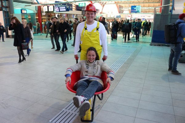 De komende tijd zijn er mensen op de been die reizigers kunnen vertellen over de nieuwe looproutes. In de eerste dagen waren er ook ententainers aanwezig om het publiek te vermaken. Zo reden er ook zogenaamde bouwvakkers rond met een kruiwagen (welke regelmatig reizigers trakteerden op een ritje) en was er een zingende postbode om de opening van het nieuwe stationsdeel in te zingen.