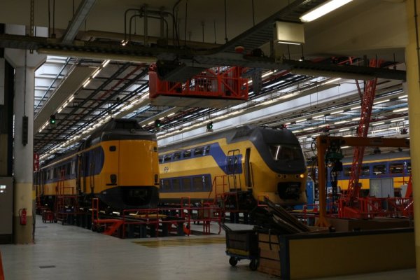 Tot zo ver het onderhoud aan de wielstellen, wielen en assen. Zo de werkplaats zijn verder nog vier sporen beschikbaar voor algemeen onderhoud, waarvan een vierde zich in een afgeschermd deel van de werkplaats is gevestigd. We kregen een rondleiding door de loos en liepen onder andere langs een ICM en een VIRM-trein langs welke beiden een onderhoudsbeurt kregen.