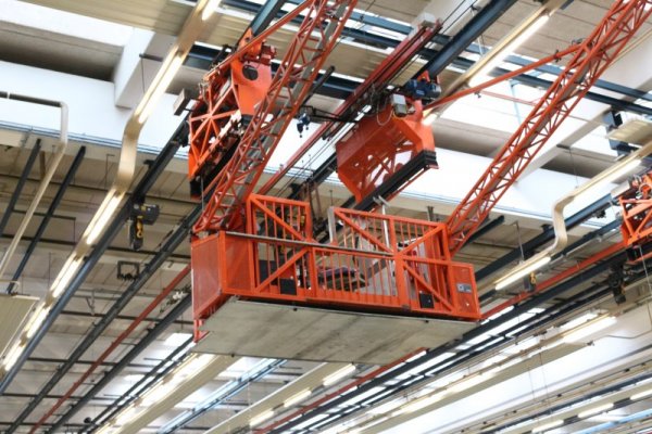 hele werkplaats regelmatig heftrucks rond. Voor de veiligheid moeten de werknemers daarom zo veel mogelijk de groene looppaden in de hele hal gebruiken