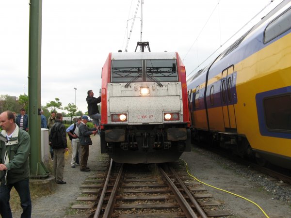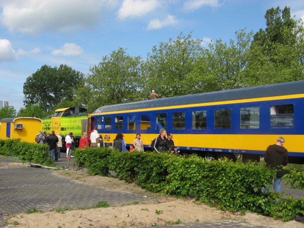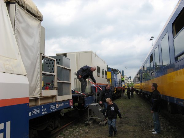 Later heb ik nog even de materieelshow even aangedaan waarna ik rond een uur of 17 weer richting huis vertrok. Hierbij viel me op vanaf het perron dat de Kameel (NS-20) die de hele tijd op het middenspoor rustte weer in beweging zou komen omdat enkele mensen erin stapten. Bij navraag van een kennis die ook een spoorweg-fanaat is, bleken dit jongelui te zijn die vrijwilliggers waren van de NS, en een ritje aangeboden kregen in de Kameel. Deze hebben dan ook waarschijnlijk op deze materieelshow geholpen.