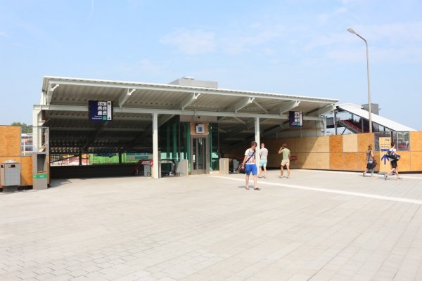Aan de overkant van het spoor komt men uit bij het busplatform. Dit plein zal de komende tijd nog op de schop gaan.