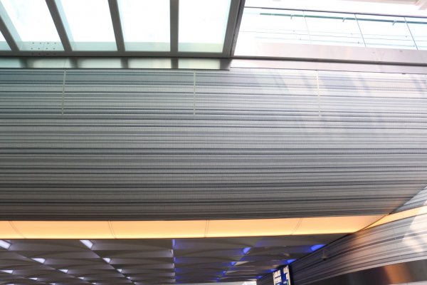 We lopen de trap af en komen uit in de brede de tunnel, opmerkelijk is de duurzame led-verlichting aan het plafond.