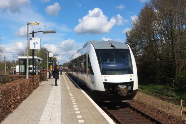 Een gereviseerde LINT te Geerdijk, kenmerkend met de blauwe uitstraling die bepalend is voor de Vechtdallijn. Foto: Ariën Claij